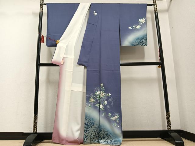 平和屋着物●訪問着 枝花文 暈し染め 金銀彩 正絹 逸品 AABD7524ph