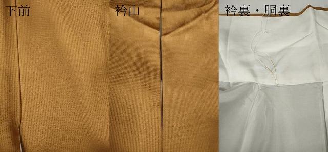 状態は接写画像のように下前・衿山・衿裏・胴裏に薄い汚れがございますが