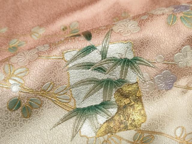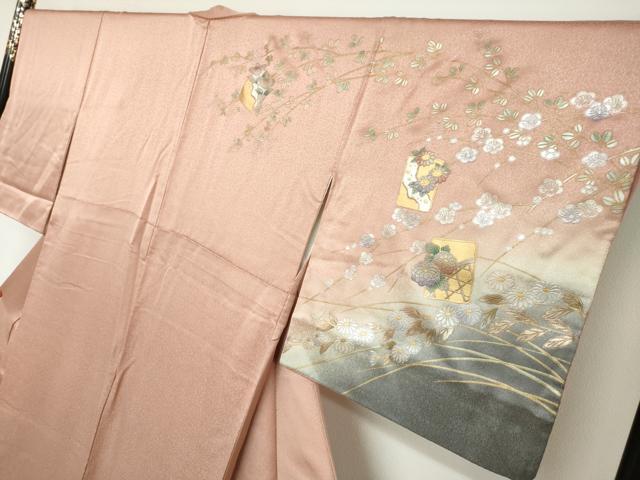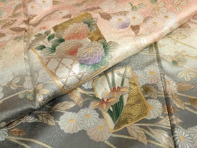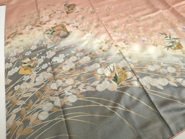 平和屋着物●訪問着 色紙草花文 暈し染め 金銀彩 正絹 逸品 DABC2753ud