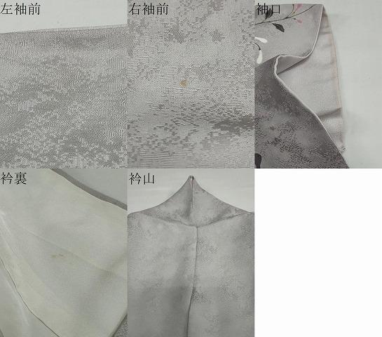 状態は接写画像のように左袖前・右袖前・袖口・衿裏・衿山に薄い汚れがございますが