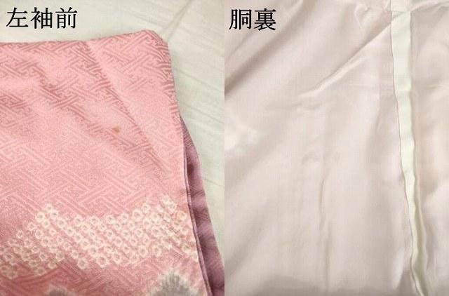 状態は接写画像のように左袖前・胴裏に汚れがございますが