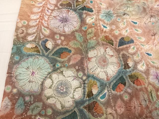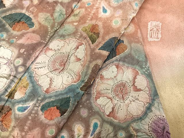 平和屋着物●越後十日町の一流染匠 桐屋・翠山工房 訪問着 辻が花 絞り 暈し染め 銀通し地 正絹 逸品 AABE3936ph