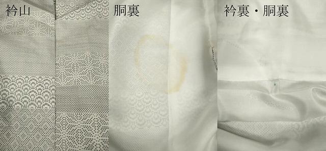 状態は接写画像のように衿山に薄い汚れ、胴裏に薄いシミ、