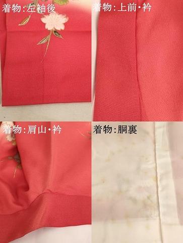 産着【正絹】の状態は接写画像のように左袖後に汚れ、上前・衿に薄い汚れ、肩山・衿にヤケ、胴裏にシミがございますが
