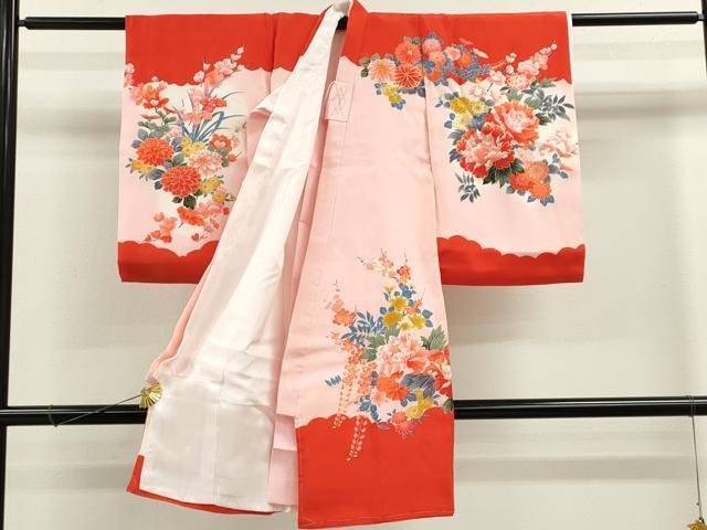 平和屋着物お宮参り 女の子 祝着 産着 初着 のしめ 花車文 暈し染め 金彩 逸品 CAAZ7057ze