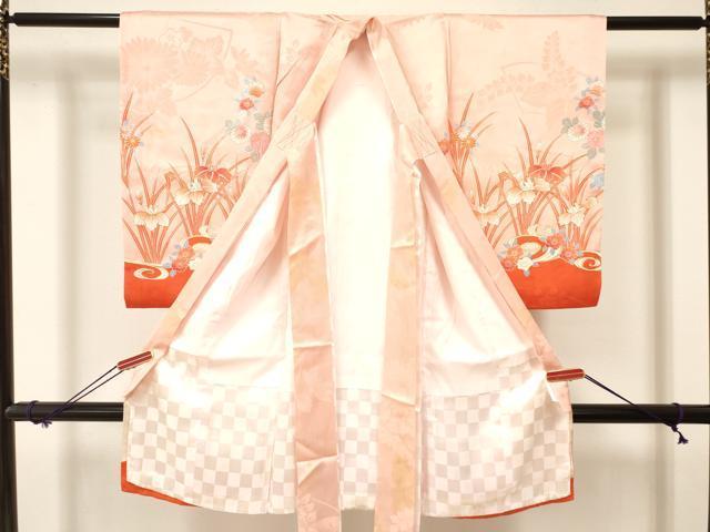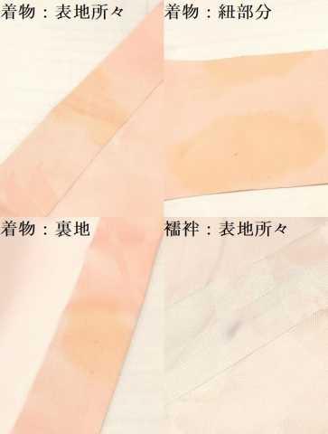 着物:表地所々・裏地・紐部分、襦袢:表地に薄い汚れがございます。