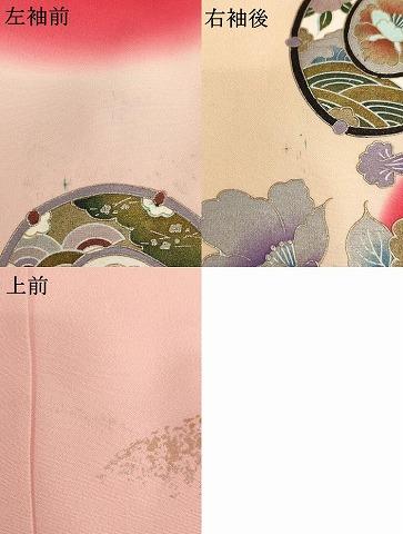 産着【正絹】の状態は接写画像のように左袖前・右袖後に汚れ、上前に薄い汚れがございますが