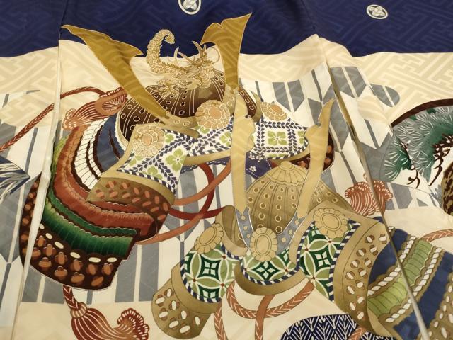 産着【正絹・五つ紋】の状態は接写画像のように左袖前に汚れがございますが