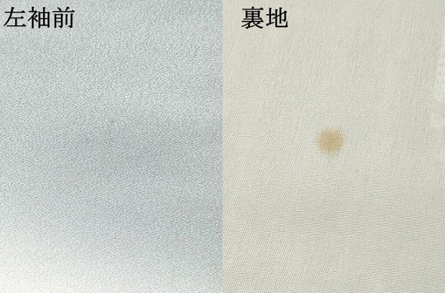 状態は接写画像のように左袖前・裏地に薄い汚れがございますが