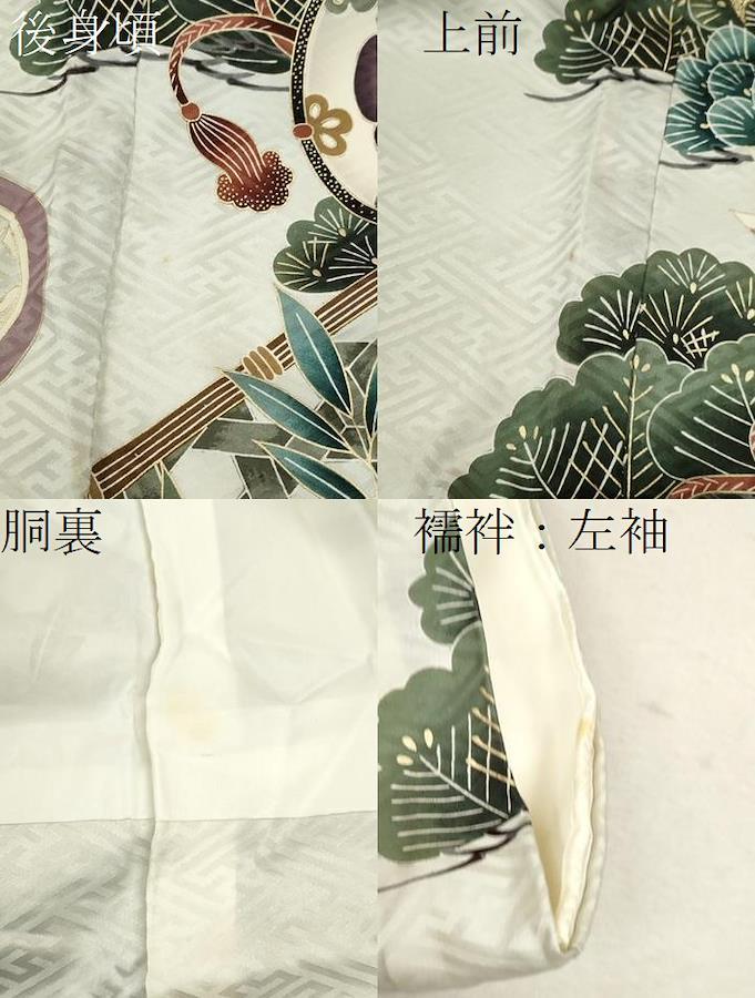 の状態は接写画像のように後身頃・上前・胴裏・襦袢の左袖に薄い汚れがございますが