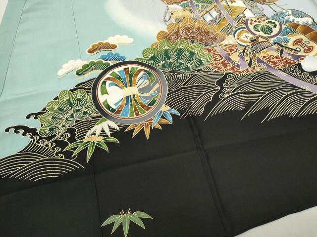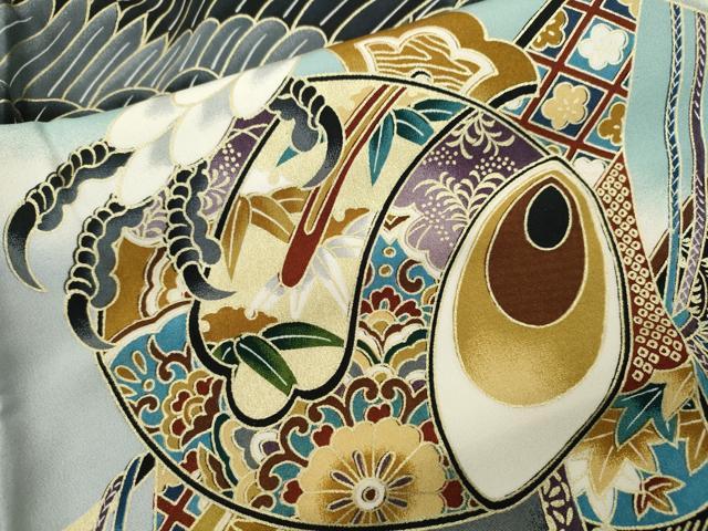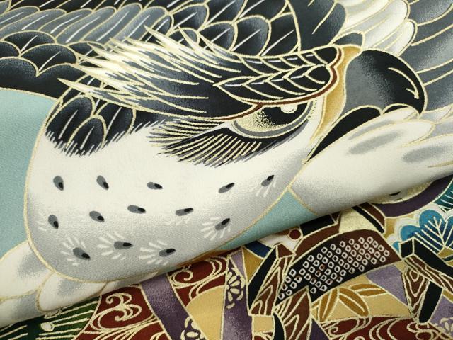 産着【表地:正絹・胴裏:化繊】の状態は接写画像のように右袖前に薄い汚れがございますが