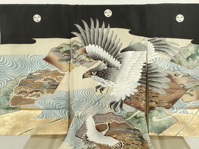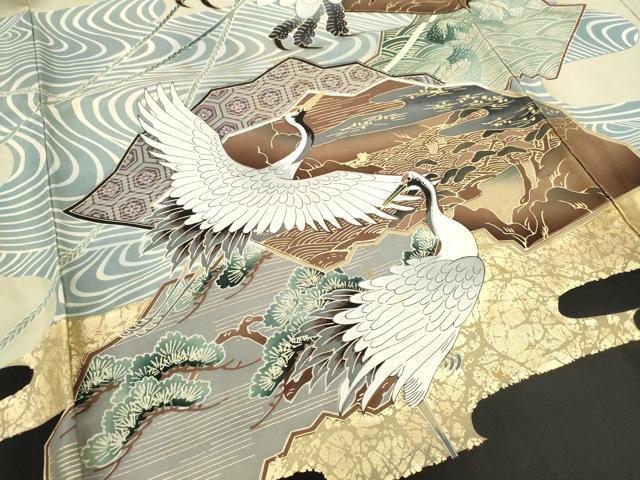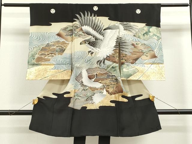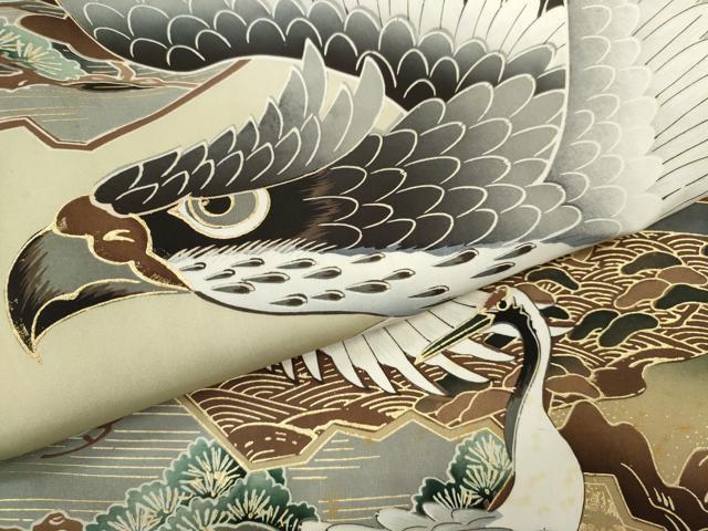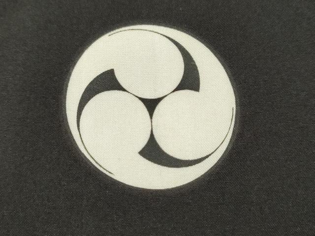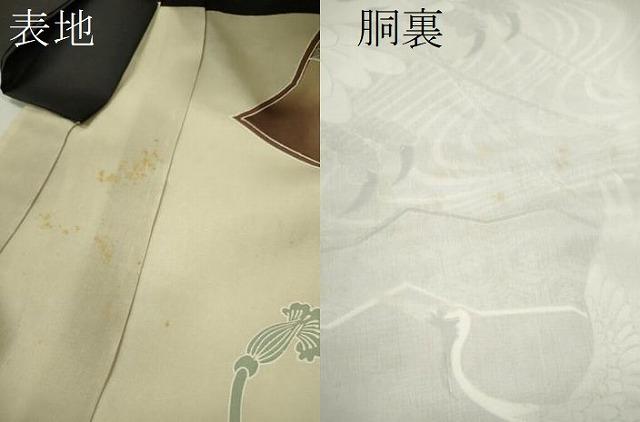 産着【表地:正絹・胴裏:化繊・五つ紋】の状態は接写画像のように表地所々・胴裏に薄い汚れがございます。
