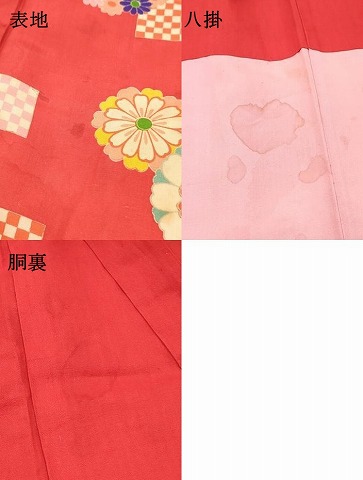 状態は接写画像のように表地所々・八掛・胴裏に薄い汚れがございます。