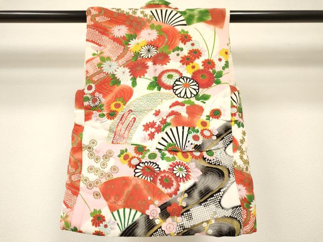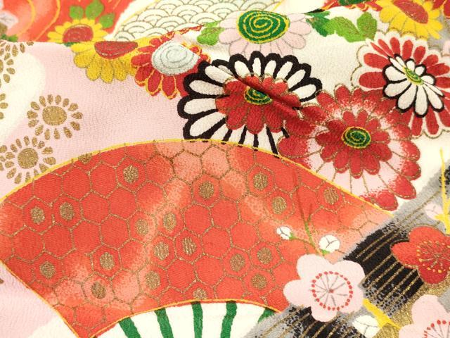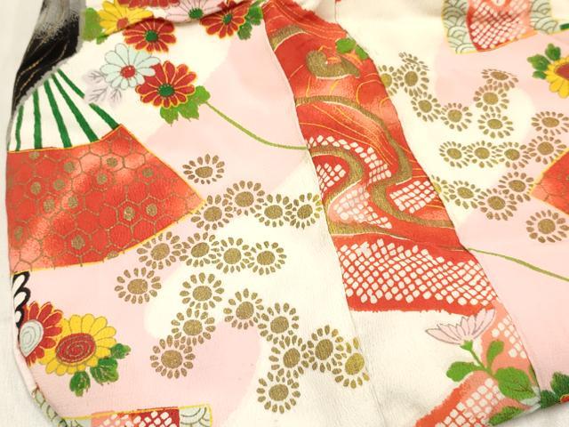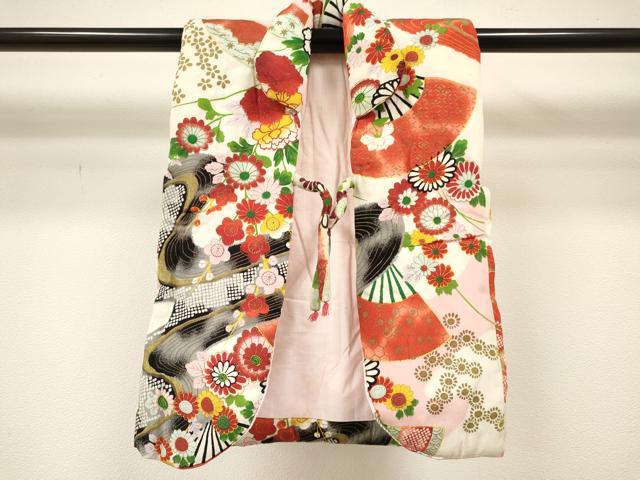 平和屋着物アンティーク 大正ロマン 女の子 子供 被布 流水扇面花文 金彩 逸品 DABC5388ma