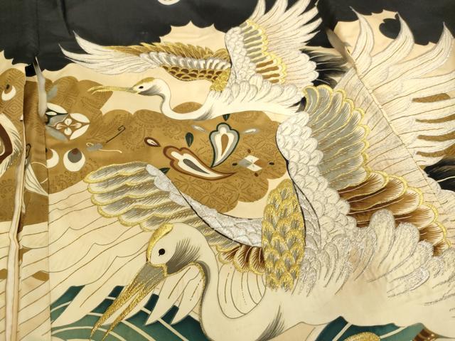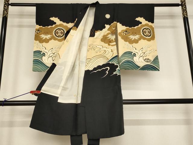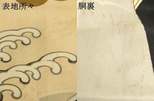 産着【正絹・五つ紋】の状態は接写画像のように表地所々・胴裏に汚れがございます。