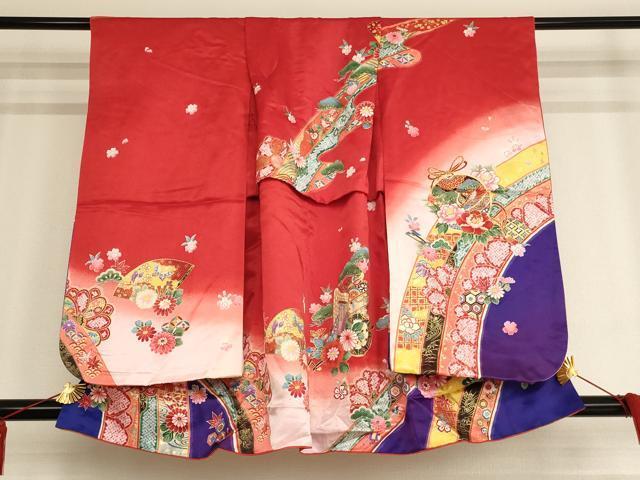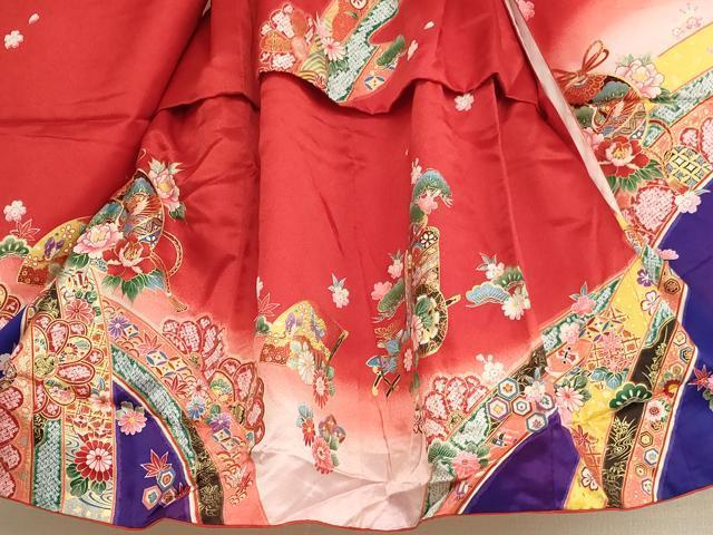 平和屋着物七五三 女の子 3歳 祝着 三つ身 鈴花文 暈し染め 金彩 AAAW7084ja