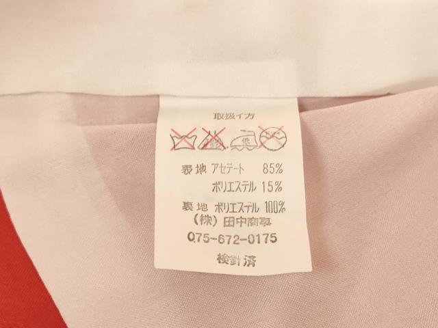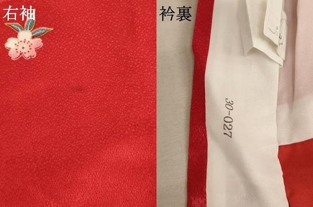 着物【化繊】の状態は接写画像のように右袖前に汚れ、衿裏にシールがございますが