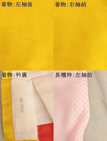 着物【化繊】の状態は接写画像のように左袖後・右袖前に汚れ、衿裏にシールがございますが