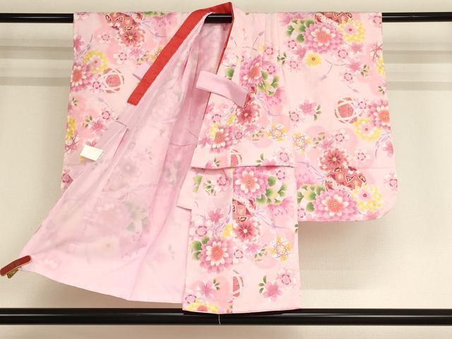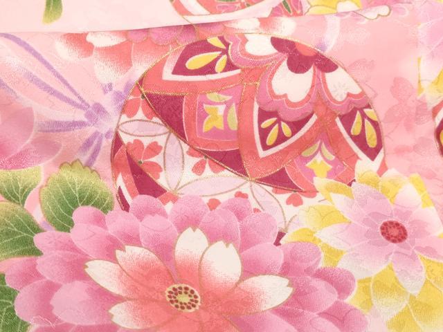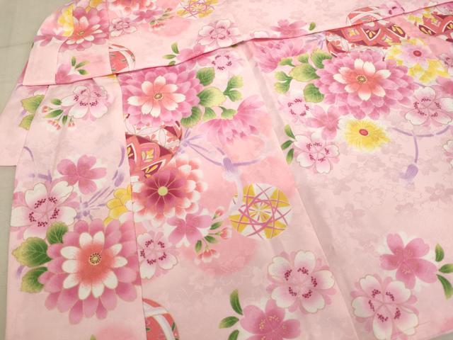 平和屋着物七五三 女の子 3歳 祝着 三つ身 長襦袢(単衣)・被布・小物セット 花手毬文 暈し染め 金彩 未使用 AABB5786ja