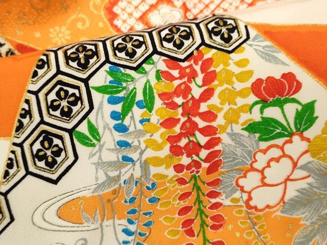 着物【表地:正絹・胴裏:化繊】の状態は接写画像のように紐に色移りがございますが