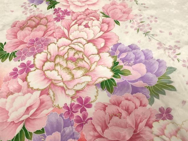 着物【化繊】の状態は接写画像のように右袖後に汚れがございますが