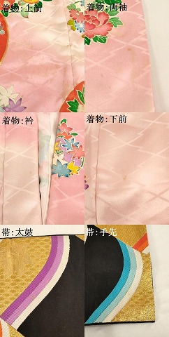 着物【正絹】の状態は接写画像のように上前・下前・衿・両袖に汚れがございますが