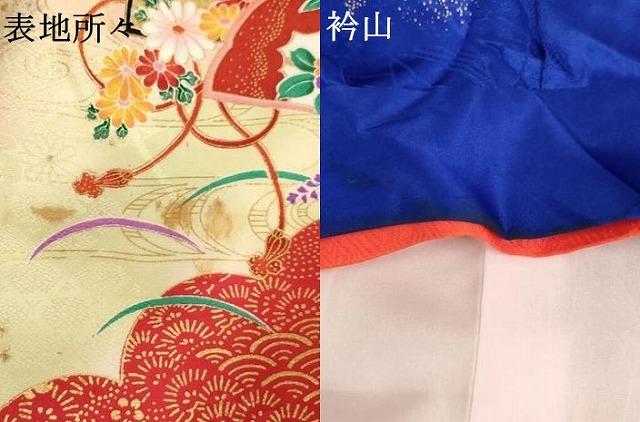 着物【正絹】の状態は接写画像のように表地・衿山に汚れがございますが