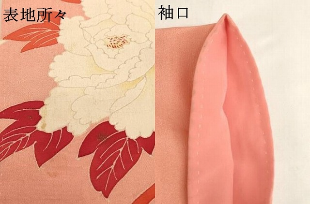着物【正絹】の状態は接写画像のように表地所々・袖口に汚れがございます。