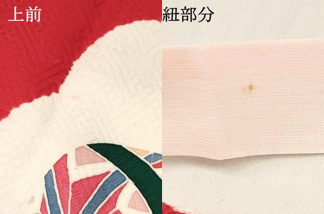 状態は接写画像のように上前・紐部分に薄い汚れがございますが
