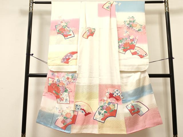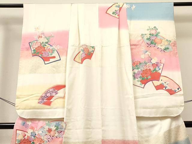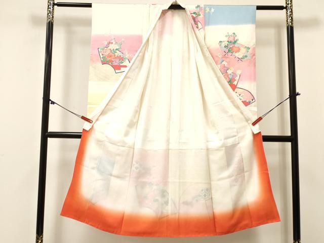 平和屋着物七五三 女の子 7歳 祝着 四つ身 駒刺繍 地紙鴛鴦花文 暈し染め 金彩 逸品 DABC5447ma