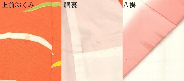 状態は接写画像のように上前おくみ・胴裏・八掛に薄い汚れがございますが