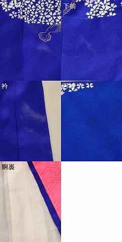 着物【正絹】の状態は接写画像のように後身頃・下前・衿・両袖に汚れ、胴裏にシミがございますが