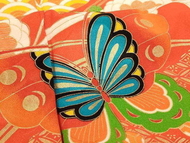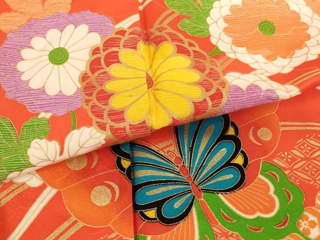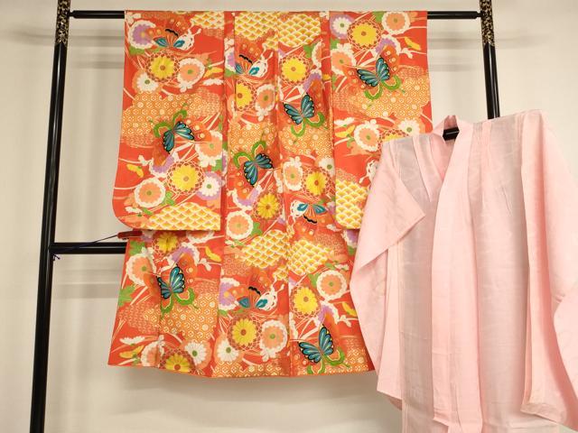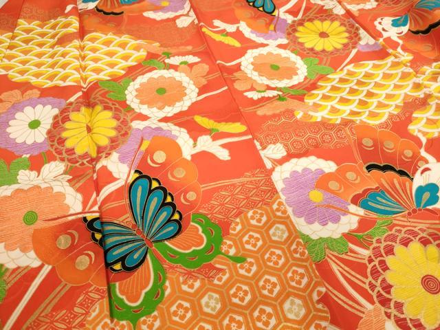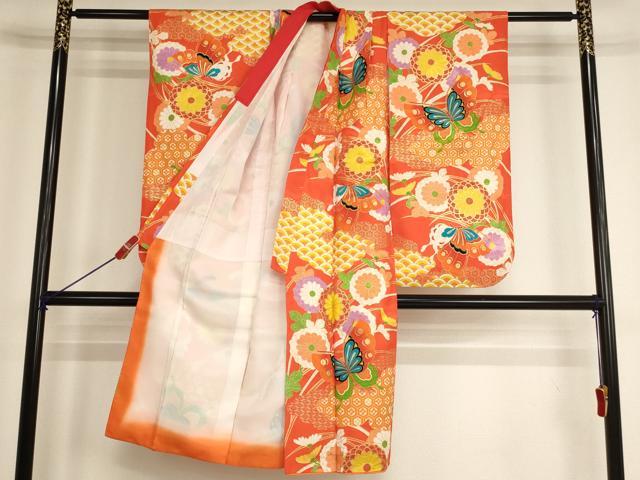 平和屋着物七五三 女の子 5歳 祝着・長襦袢セット 花蝶文 菊 金彩 洗える着物 AABH2864ja