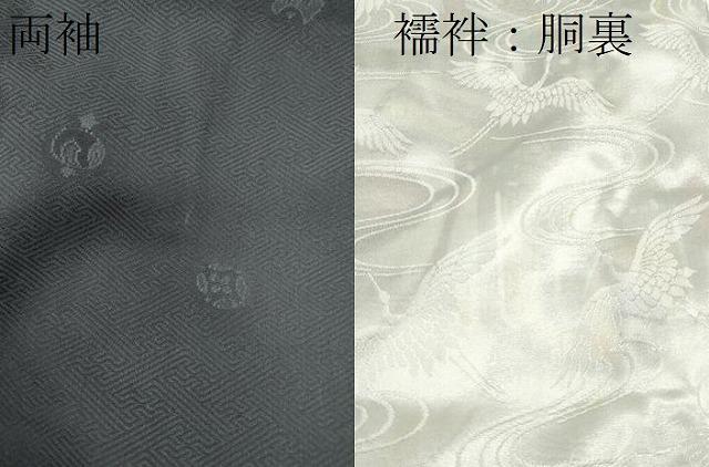 羽織【表地:正絹・胴裏:化繊・五つ紋】の状態は接写画像のように胴裏に薄い汚れがございますが