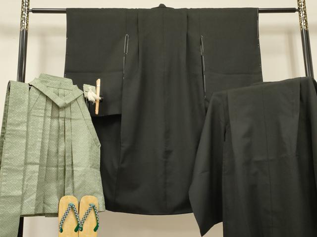 着物【化繊】・羽織【化繊】・袴【交織】・帯【化繊】のいずれも