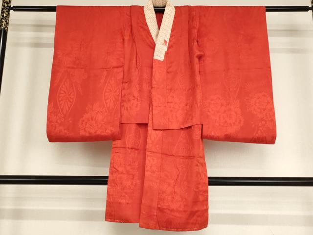 平和屋着物大正ロマン アンティーク 長襦袢 袷 子供 女の子 立涌草花地紋 紅緋色 正絹 逸品 AABG3391ja