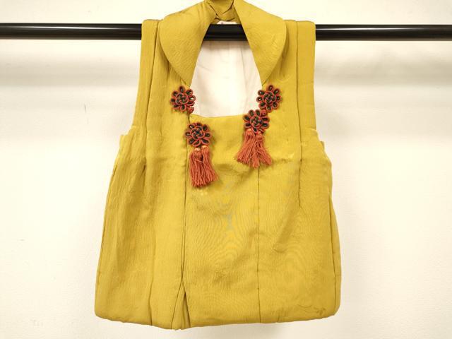 平和屋着物女の子 子供 被布 舞蝶芝地紋 黄朽葉色 逸品 DAAY3166ma