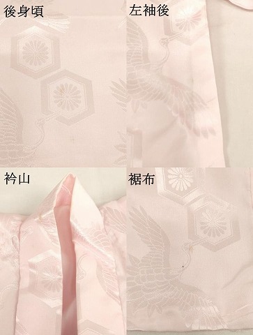 長襦袢【化繊】の状態は接写画像のように後身頃・左袖後・衿山・裾布に汚れがございますが