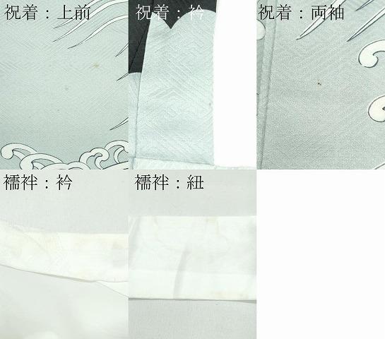 祝着の状態は接写画像のように、上前・衿・両袖に薄い汚れがございますが