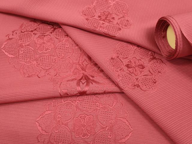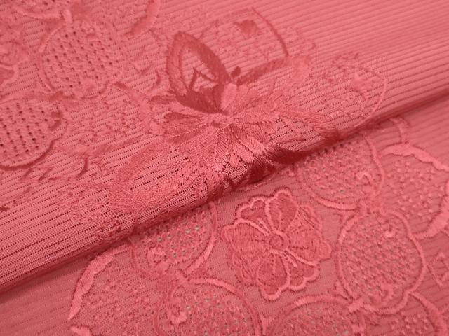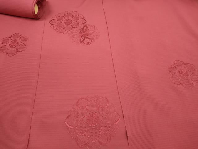 平和屋着物*夏物 中国三大刺繍 汕頭刺繍 付下げ 反物 着尺 絽 堅牢染 正倉院花 臙脂色 逸品 未使用 DAAV8288zzz