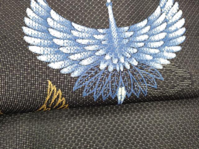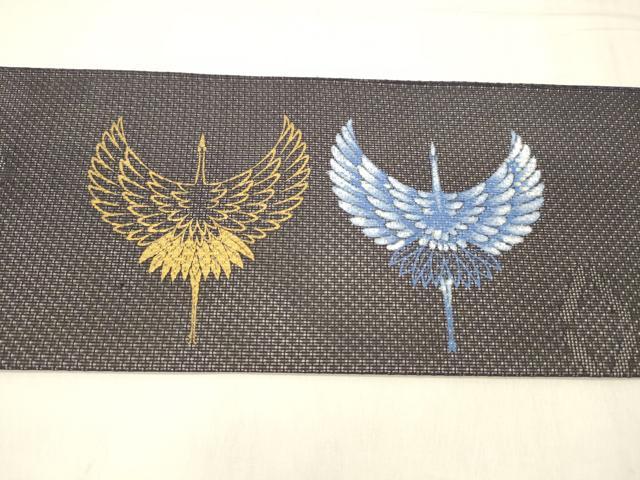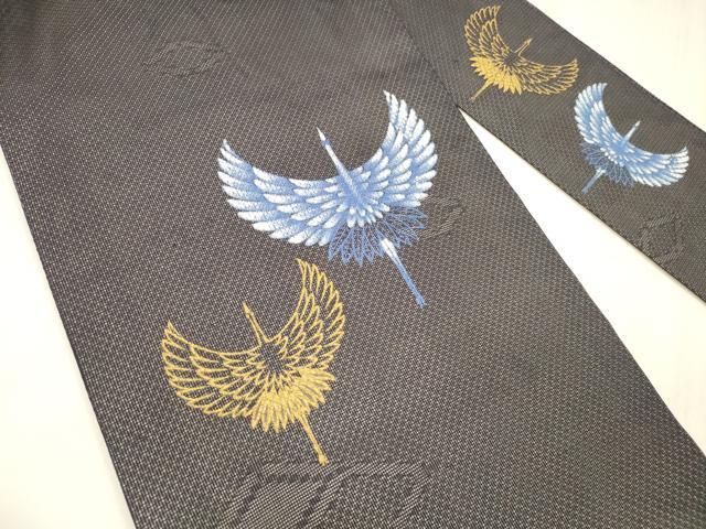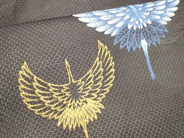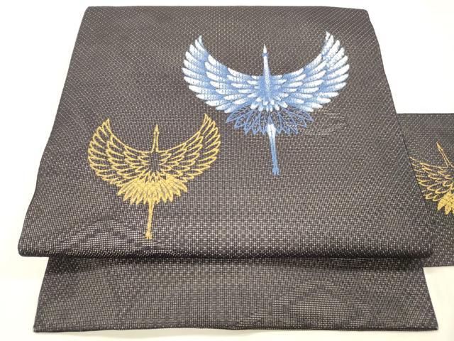 平和屋着物*夏物 九寸名古屋帯 飛鶴文 黒地 金彩 正絹 逸品 DABE6015cm