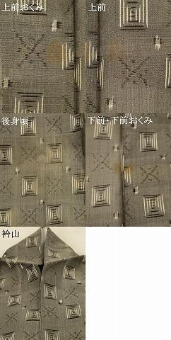 状態は接写画像のように上前おくみ・上前・後身頃・下前・下前おくみ・衿山に薄い汚れがございますが