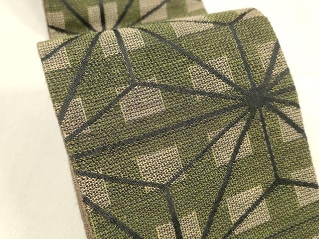平和屋着物*夏物 男性 角帯 格子麻の葉文 正絹 逸品 DABD6911cm
