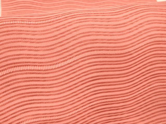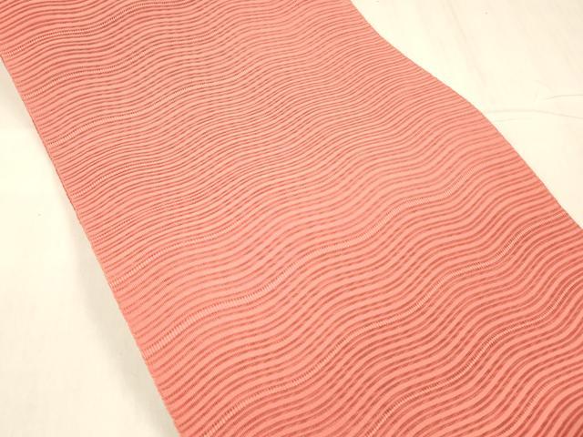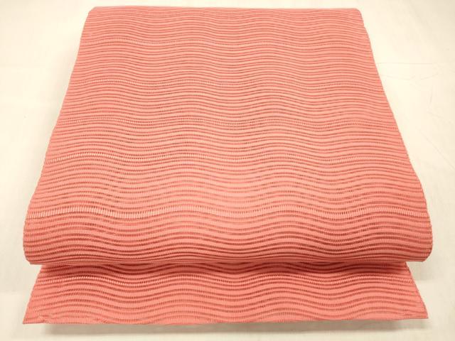 平和屋着物*夏物 絽綴れ 八寸名古屋帯 よろけ縞 韓紅色 ゑり善扱い たとう紙付き 正絹 逸品 DABE6045cm