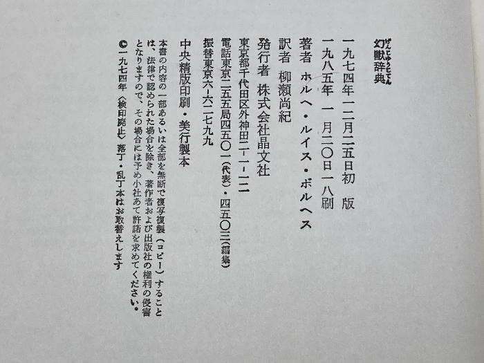 商品名:幻獣辞典 ホルヘ・ルイス・ボルヘス、マルガリータ・ゲレロ 著、柳瀬尚紀 訳 晶文社