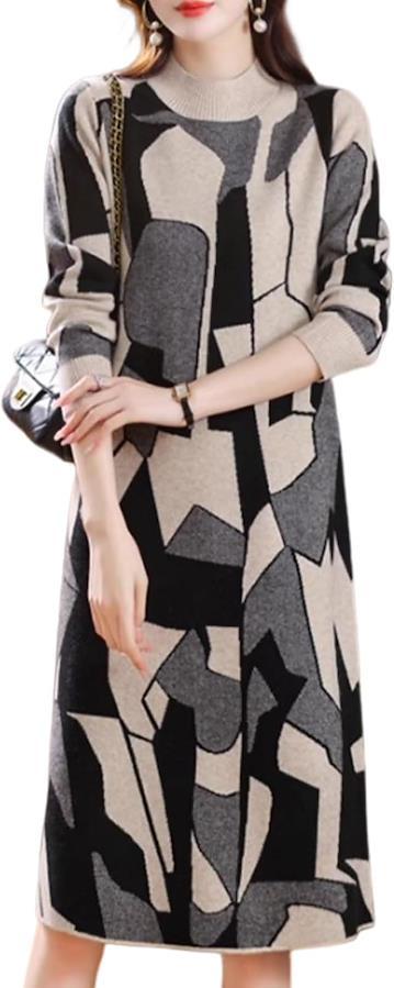モダンな総柄で1枚で、上品に仕上がるニットワンピースが登場しました。