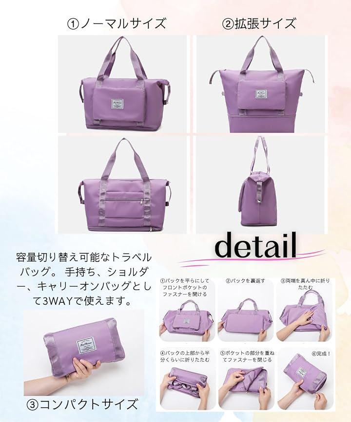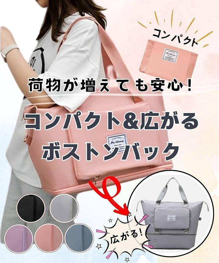 容量切り替え可能な多機能ボストンバッグ:手持ち・ショルダー・キャリーオンバッグとして使える3WAY仕様の旅行バック。