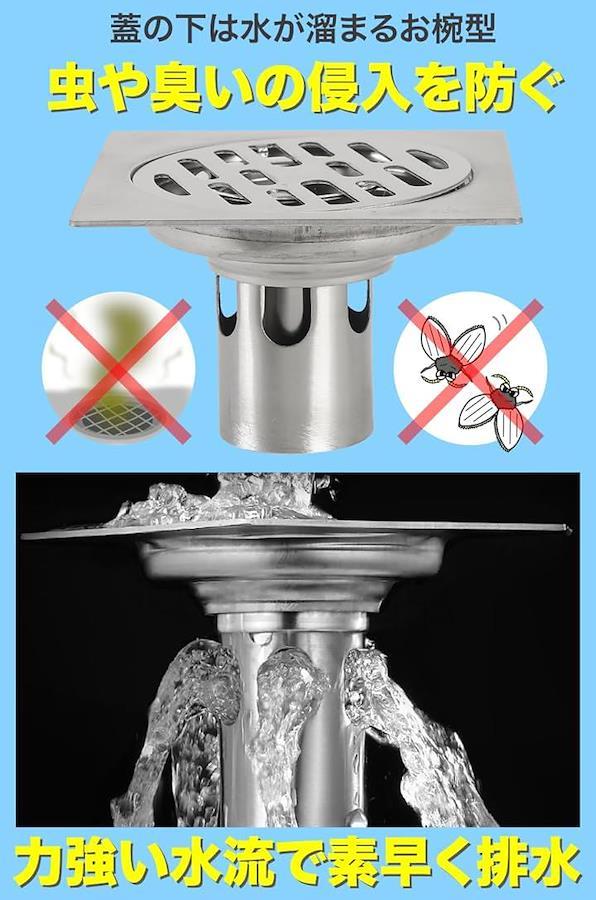 「虫とニオイを対策」蓋の下は水が溜まるお椀型の設計になっており、排水管から上がってくる嫌なニオイを遮断してくれます。