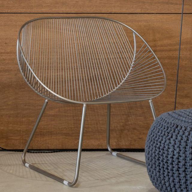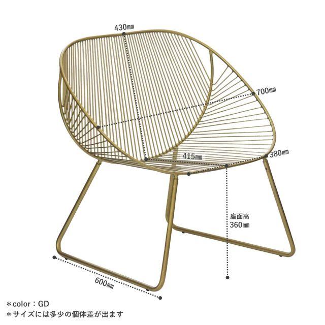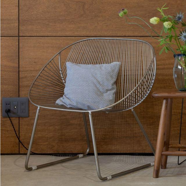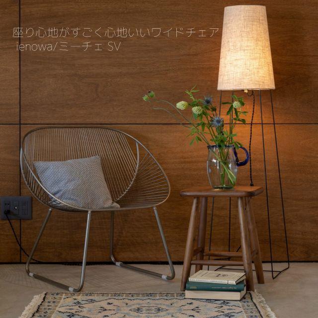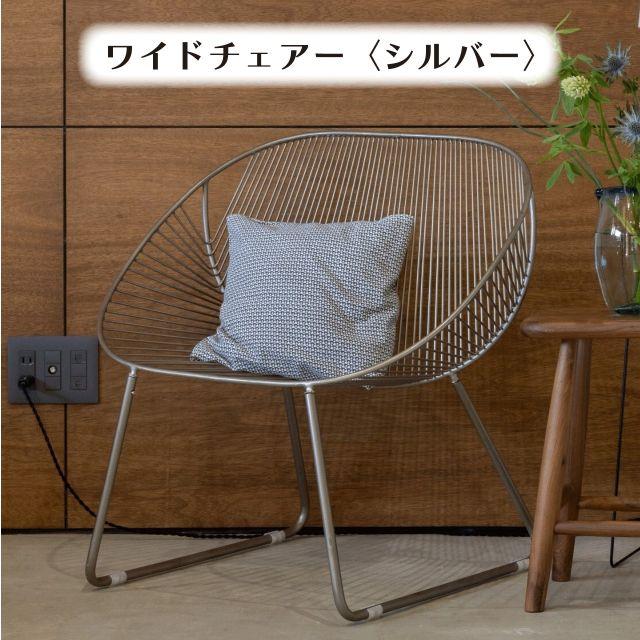 座り心地がすごく心地いいワイドチェアー シルバー <ienowa/ミーチェ> 幅70×高さ71×奥行き60cm パーソナルチェア 線の細いデザイン アイアン おしゃれ エレガント プレゼント