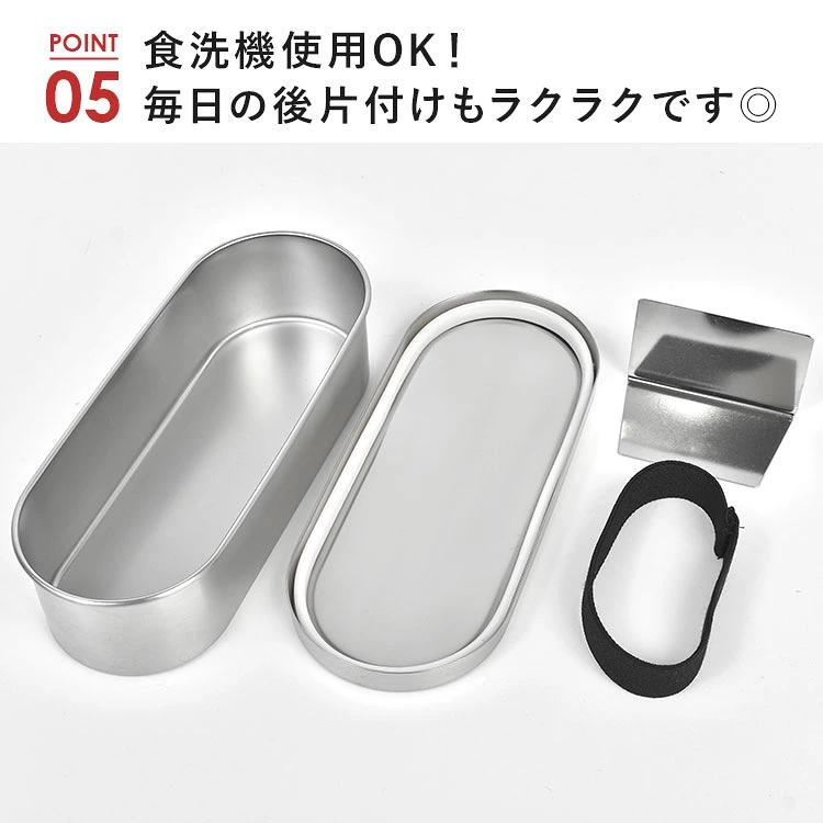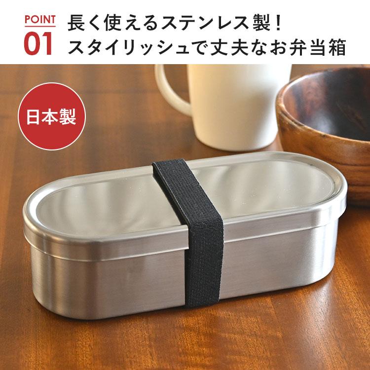 【小判型ランチボックス】錆びにくく丈夫で長く使えるステンレス製のお弁当箱。大きすぎず小さすぎない容量570mlの小判型で、おかずを詰め込みやすく美味しそうに仕上がります◎シンプルでスタイリッシュな見た目はどんなシーンでも使いやすく、使う人を選びません。18-8ステンレス製で匂い移りや色移りの心配もなく、清潔に使えます。蓋裏にはパッキン付きで汁漏れのリスクを軽減。パッキンは取り外し可能で、食洗機も使えるので毎日のお手入れも簡単です◎